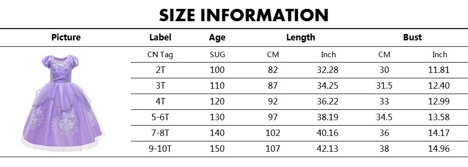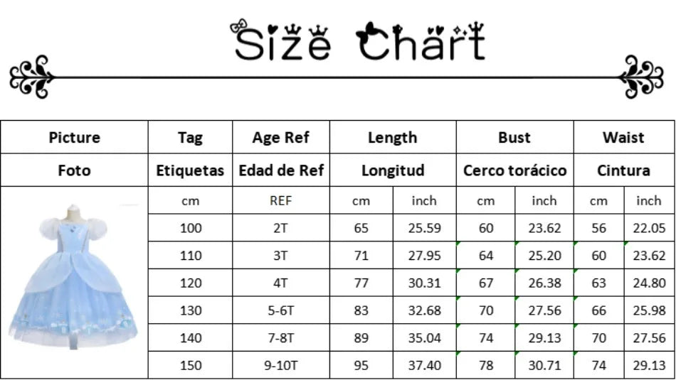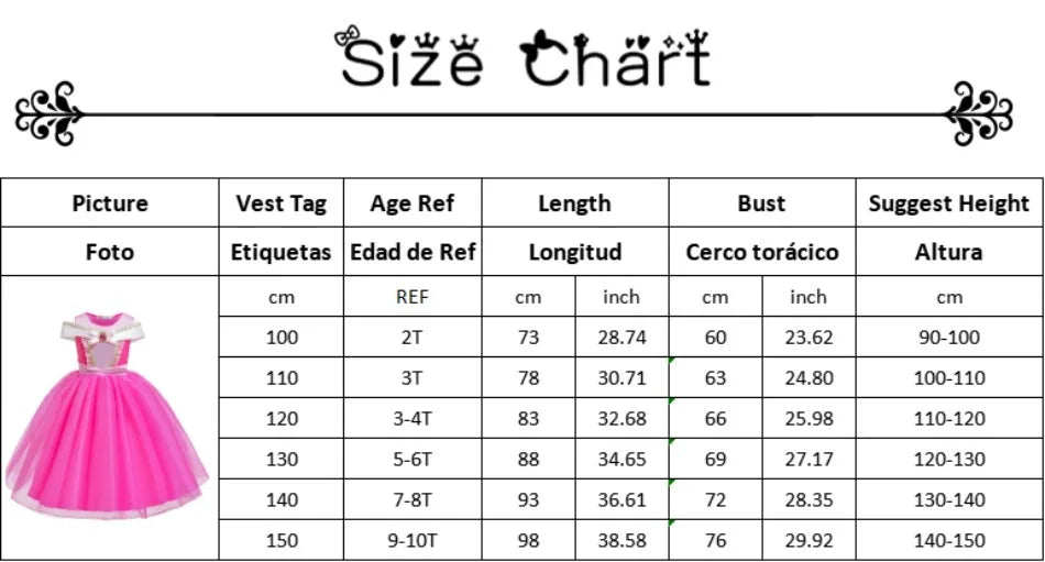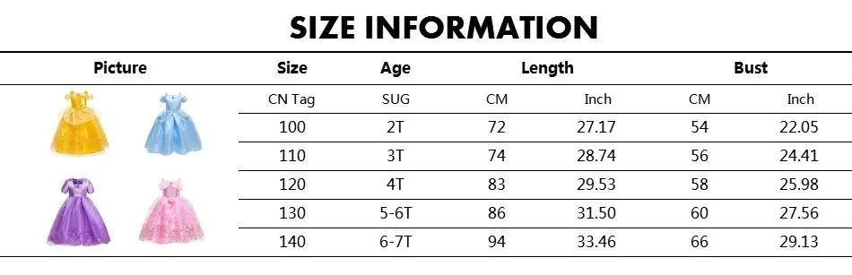 Mädchen Prinzessin-Kostüm; Aurora, Rapunzel, Sofia, Cinderella, Belle