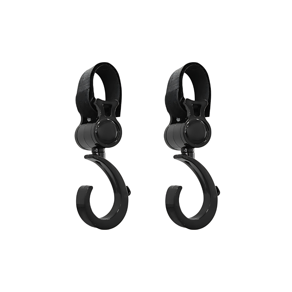 Dank 360° Rotation drehst du den Haken ganz nach Bedarf – ideal für enge Gänge oder unebene Wege. Die Haken sind universell einsetzbar, ob am Kinderwagen, Buggy, Fahrrad oder sogar im Auto.